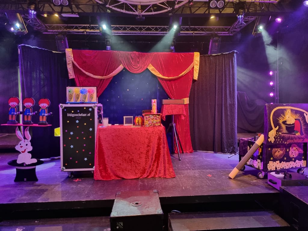 Uiteraard verzorgen wij ook prachtige verlichting! Spraak en muziek worden loepzuiver versterkt door onze eigen installatie. Een aanrader! Voor een pure kindergoochelshow kun je kijken op kidsgoochelaar.nl of goochelaar.show.