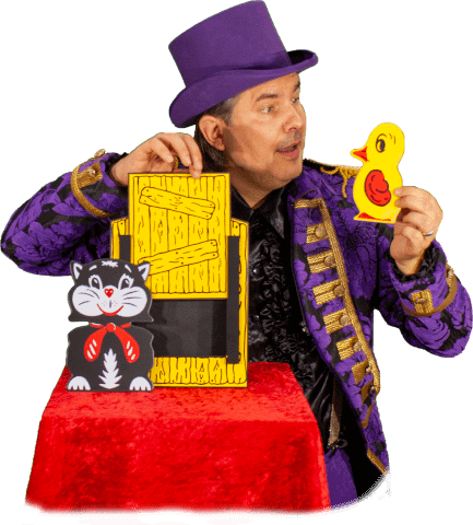 Een hele bijzondere voorstelling van een uur. Interactie, muziek, goochelkunsten en heel veel plezier!