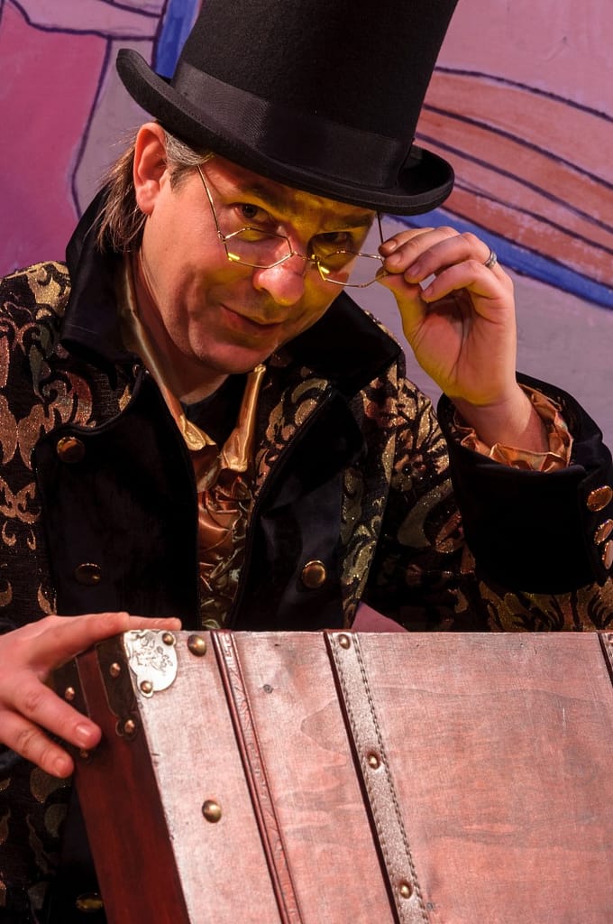 Een grappige interactieve kindertheater voorstelling van een uur. Vol magie, interactie, een prachtig decor en muziek!